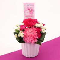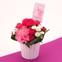 サラダやカルパッチョ、炭酸割りドリンクまで幅広く楽しめるホワイトバルサミコビネガーと、乾燥トマトやオニオン、ハーブをブレンドした味わい深いパスタ・サラダ用のソルト。シックなオリーブカラーに白の紋章が映える、ジュートバッグをセットにし、濃いピンクのカーネーションを中心に仕上げたアレンジメントフラワーと組合せ。「母の日」の贈りものにおすすめです。※写真のアレンジメントフラワーは、三方見の仕上げとなっておりますので後ろにお花は入っておりません。「母の日」ギフトカードの向きが正面となりますので、壁などを背にして置いていただけるとよりきれいにお楽しみいただけます。アレンジメントフラワーは暑さに弱いため、直射日光を避け涼しいところに置いていただくことをおすすめいたします。