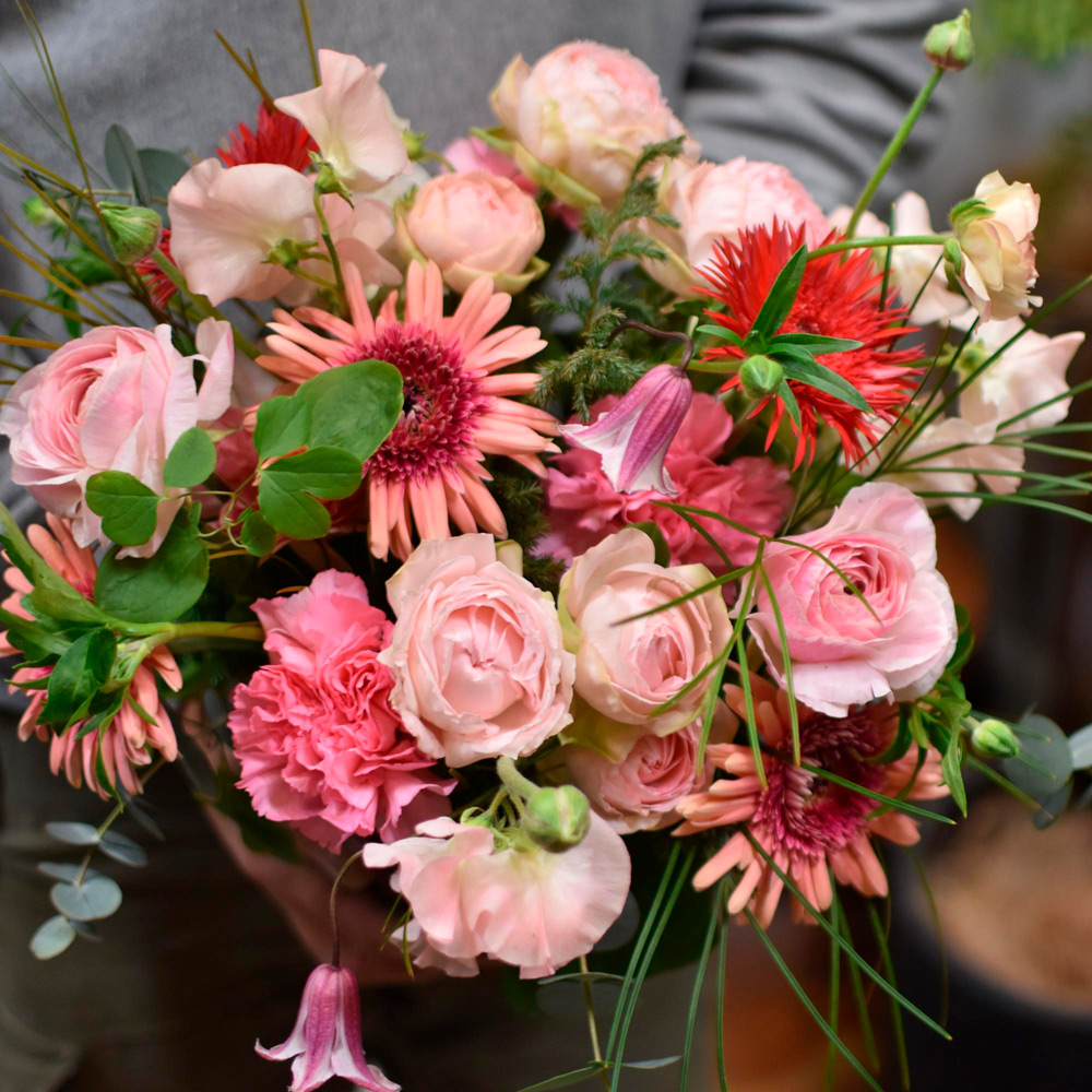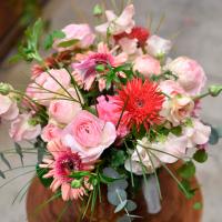カーネーションに季節のお花をプラスして、一つ一つ丁寧にお作りしたアレンジメントです。