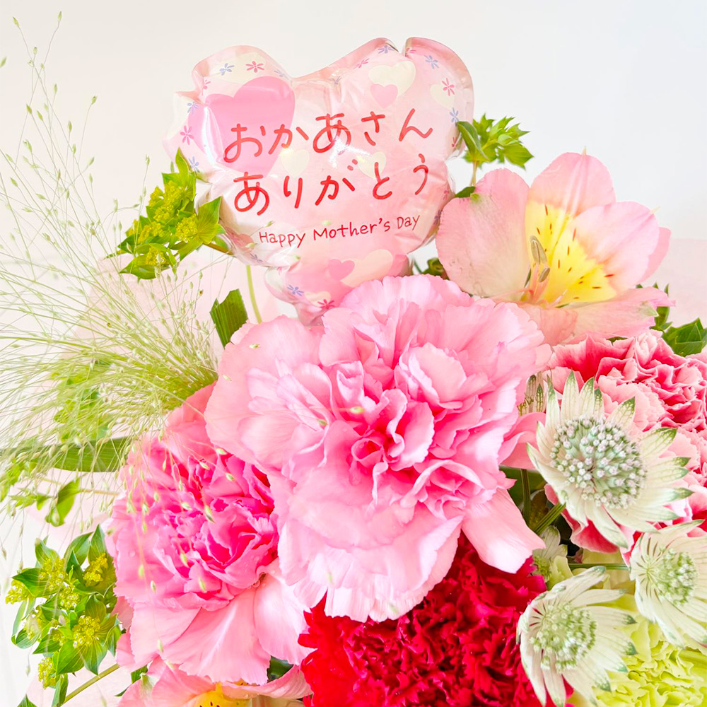 母の日に贈る ありがとうの気持ちを込めた人気のバルーンメッセージ付きアレンジメント