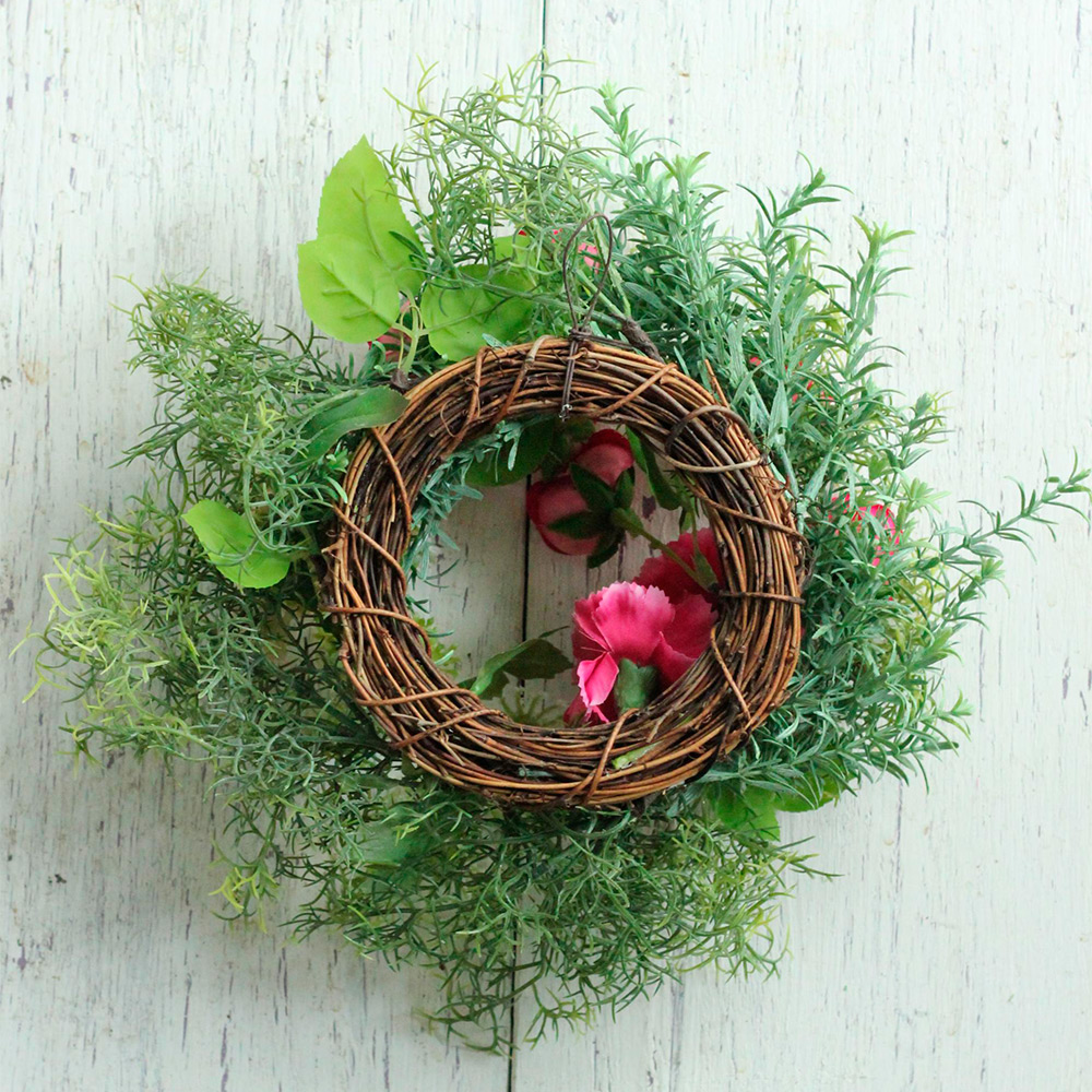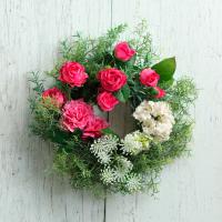 【アートフラワー】ブライトピンクのバラが華やかなフラワーリース