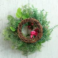 全国にスタジオ・ネットワークを持つローヤルフラワースクール代表の幸泉眞美が制作プロデュースするボタニカルな雰囲気が魅力のフラワーリースです。アーティフィシャルフラワーを使用しています。