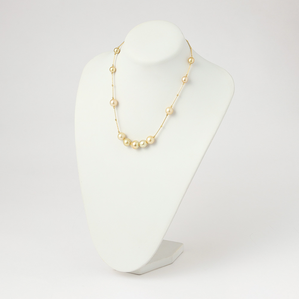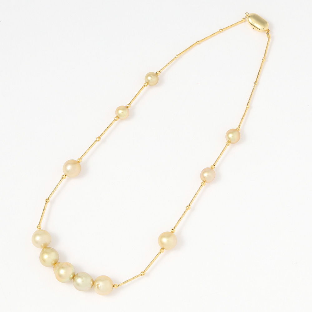 大粒8.5~12mmゴールド系白蝶真珠のステーションネックレス