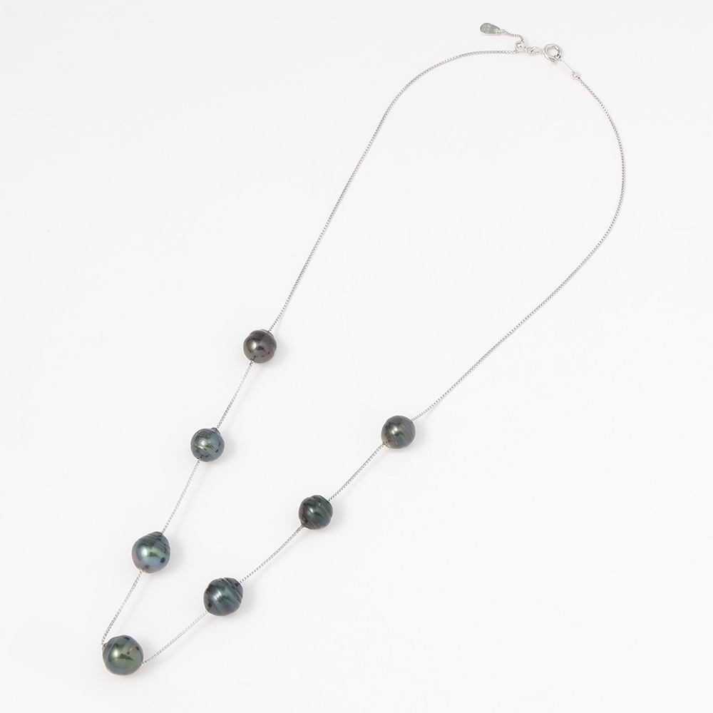 自然の形を楽しめる黒蝶真珠ステーションネックレス