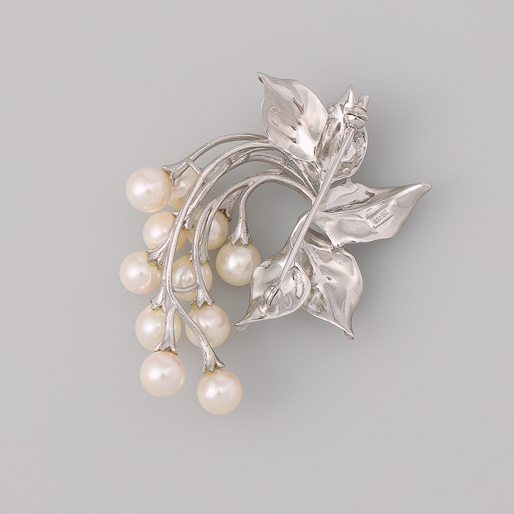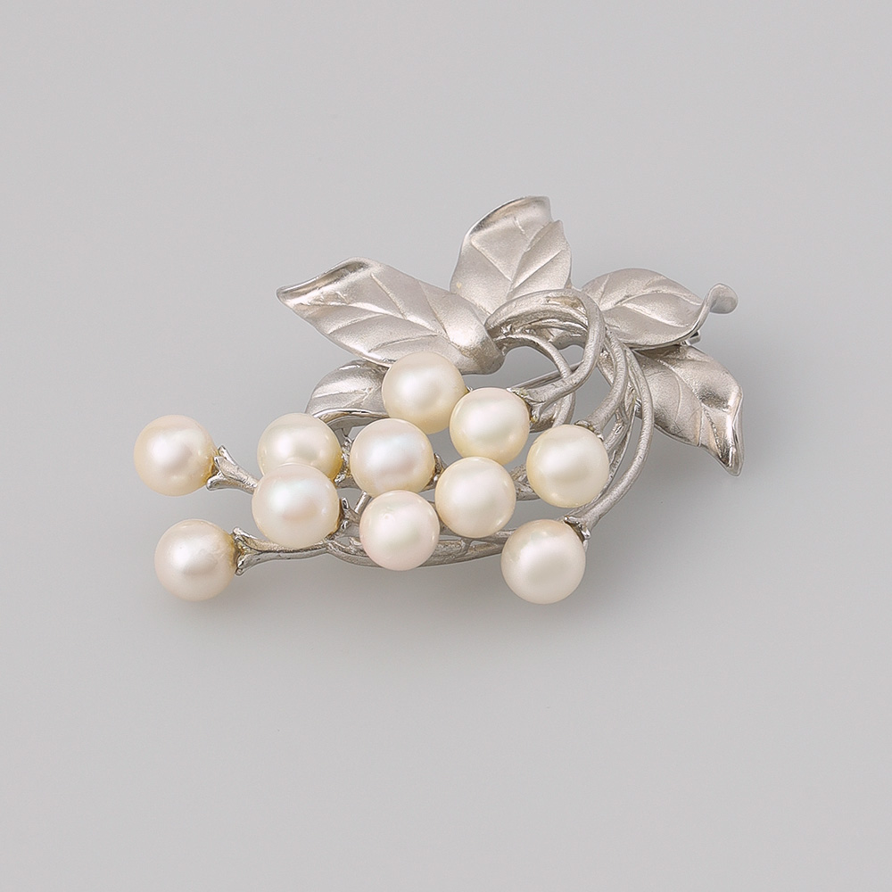 ブドウのようなデザインがおしゃれなアコヤ真珠ブローチ