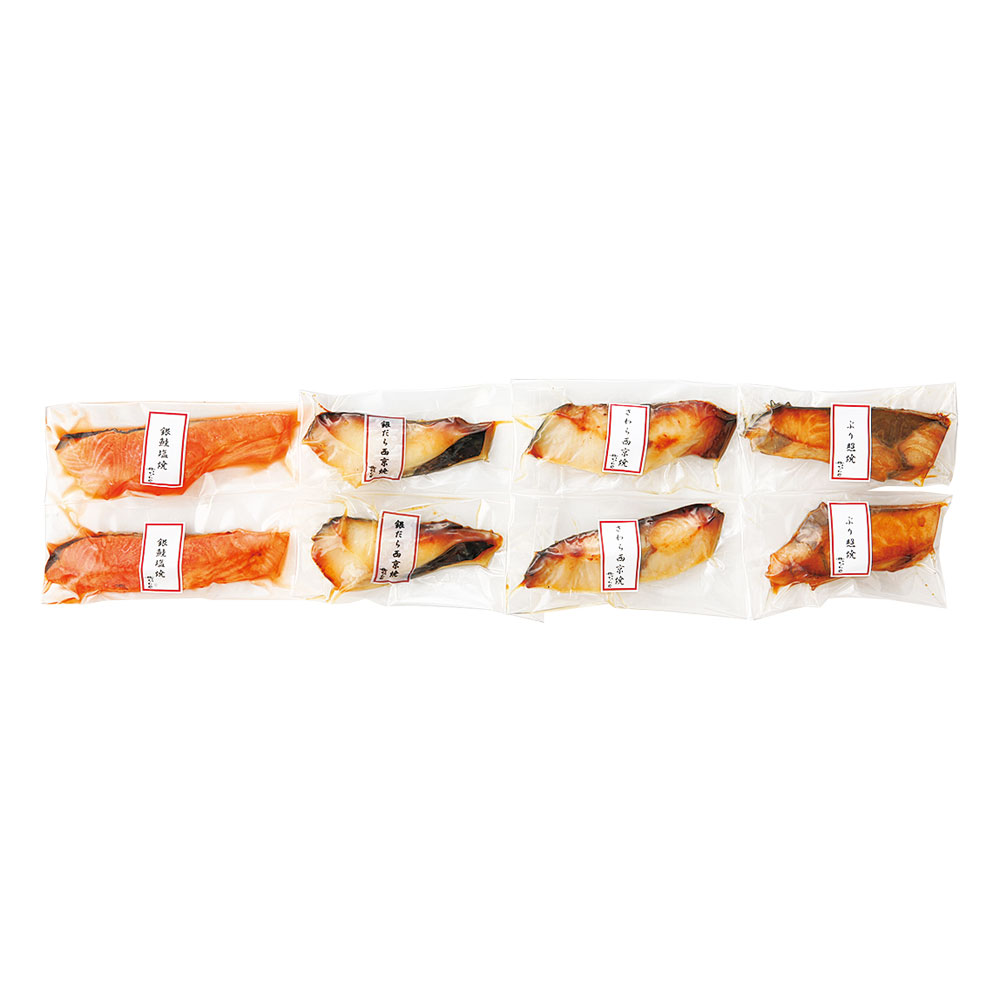 銀鮭塩焼・ぶり照焼・さわら西京焼・銀だら西京焼×各2切、4種計8切