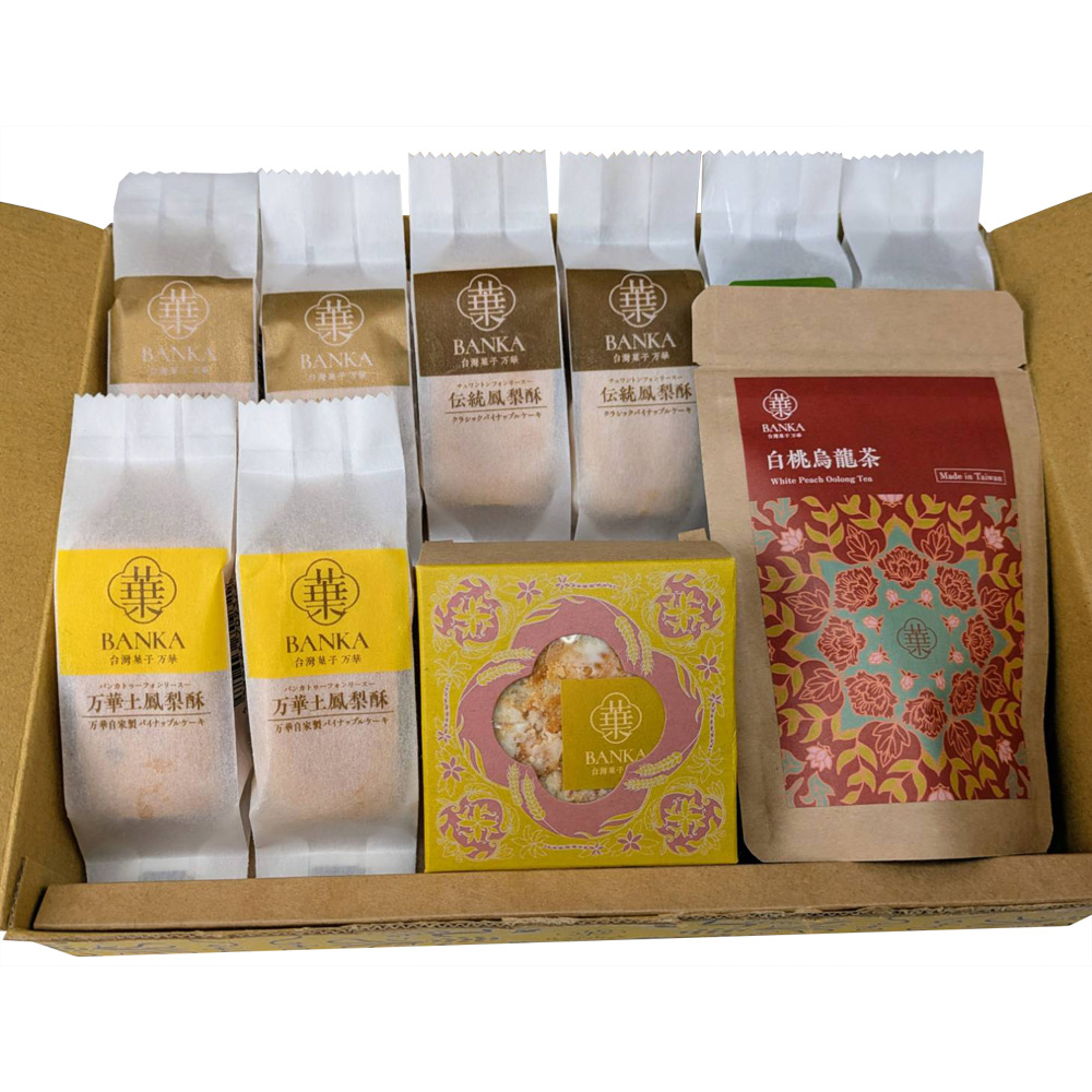 看板商品のパイナップルケーキ4種と、人気のヌガー 2種、やさしい香りが心をほぐす白桃烏龍茶を詰め合わせました。ご自宅で過ごすひとときが、少し特別な時間になりますように。母の日の贈りものに、感謝の気持ちを届けるギフトです。