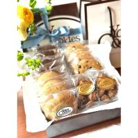 ボックス内訳はチョコチップクッキー4枚、ブラウニーのような甘さのダブルチョコクッキー4枚、英国王室御用達マルドンフレークソルトをかけたバターソルトクッキー4枚、ミニ味噌ダーククランチ2袋入り。リボン付き化粧箱&紙袋付きでそのままプレゼントにお使いいただけます。群馬県産小麦粉100%で焼き上げました。