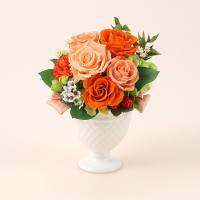 プリザーブドフラワー:バラ・アジサイ・スターフラワー・グリーン、造花、花器:陶製