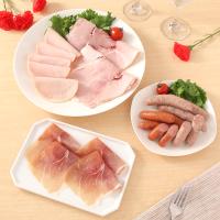 国産豚ボンレスハム120g、ロースハム68g、マジョラムウインナー80g、朝食荒挽ウインナー72g、ジャンボンセック70g