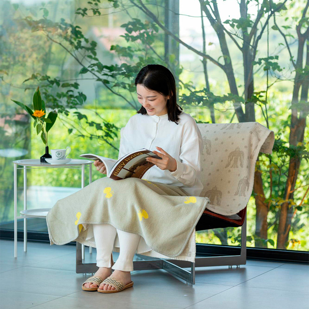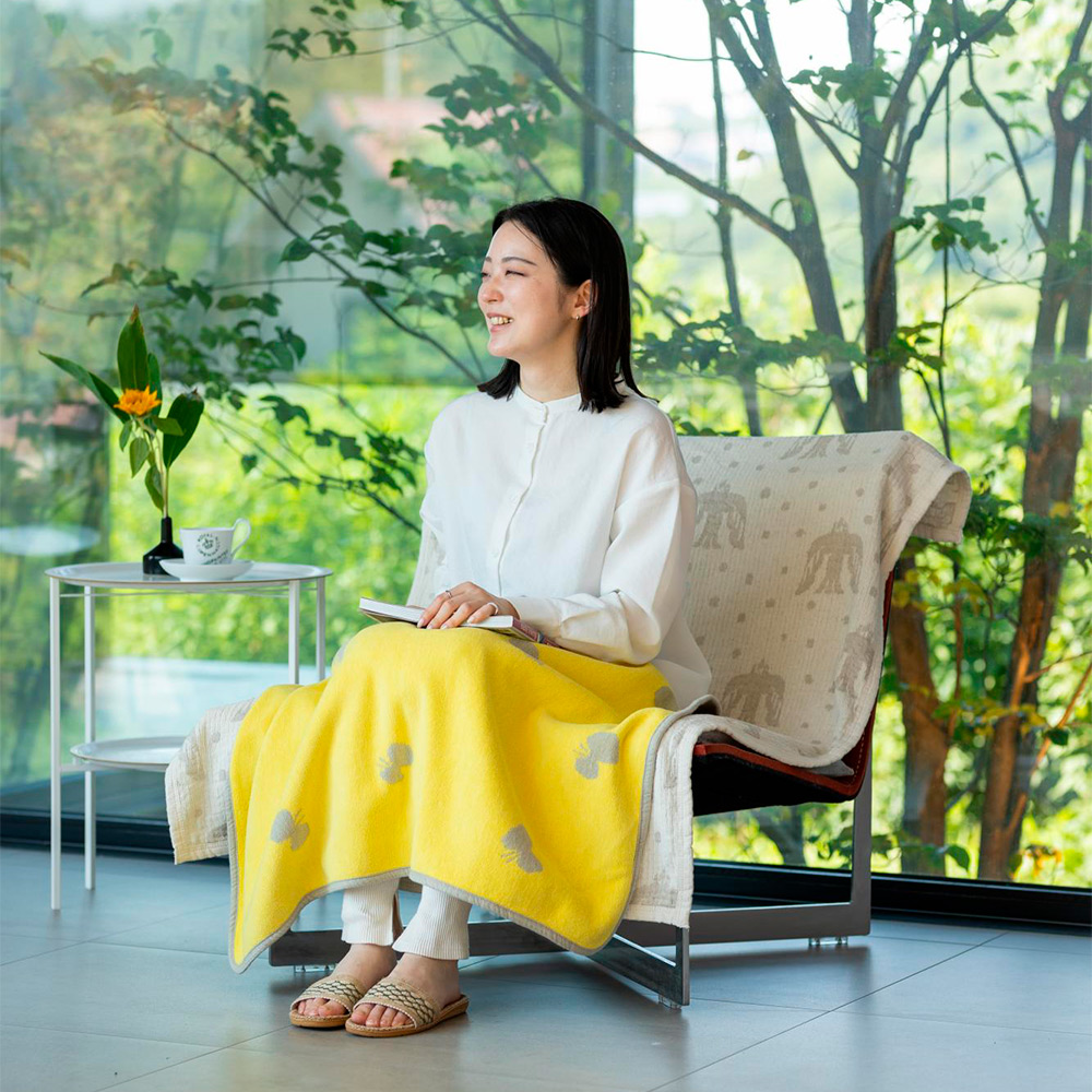 CHOUCHOがやわらかに舞うブランケット。KLIPPAN×mina perhonen(皆川明氏デザイン)