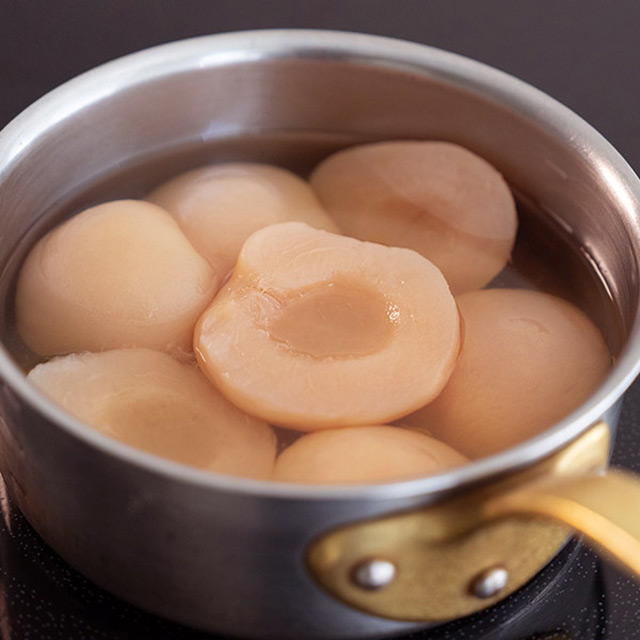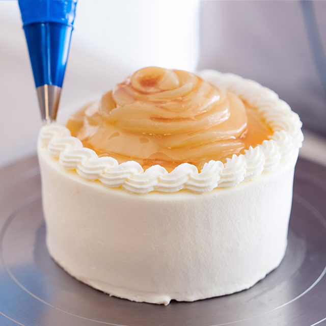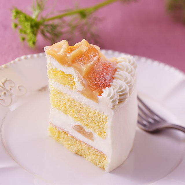 花びらをイメージした白桃を一枚一枚丁寧に飾りつけ、味わいも見た目も華やかに仕上げました。ほんのり甘酸っぱいコンポートとも相性のいい、しっとりしたスポンジ生地と、口当たりの軽いオリジナルクリームの絶妙なバランス、その魅力を存分に味わっていただける自信作となっております。