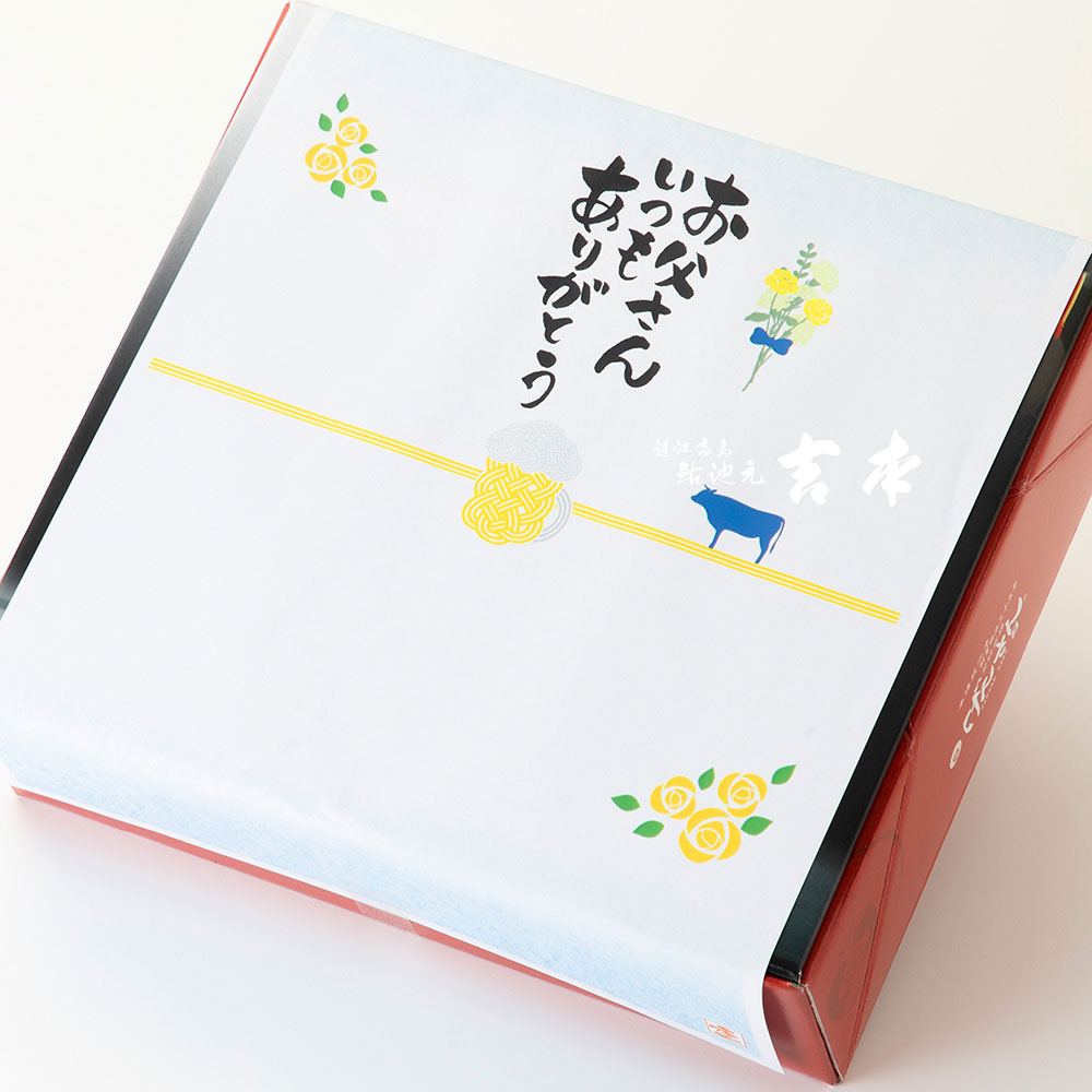 黒毛和牛赤身肉を厳選しました。お父さんいつもありがとうの掛紙付きです。