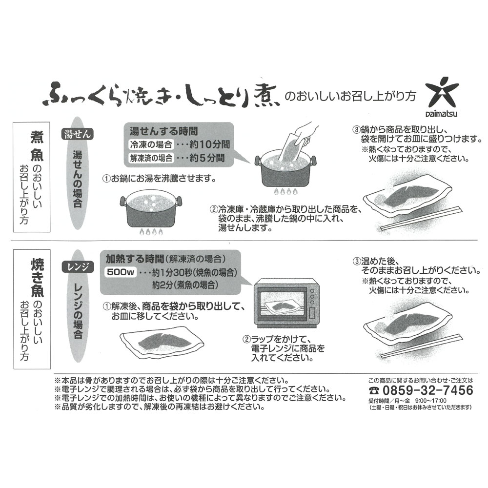 辛子明太子150g×1、あごだしうまみたらこ150g×1、かれい醤油煮100g×1、紅鮭塩焼き60g×1、ぶりの照焼き90g×2