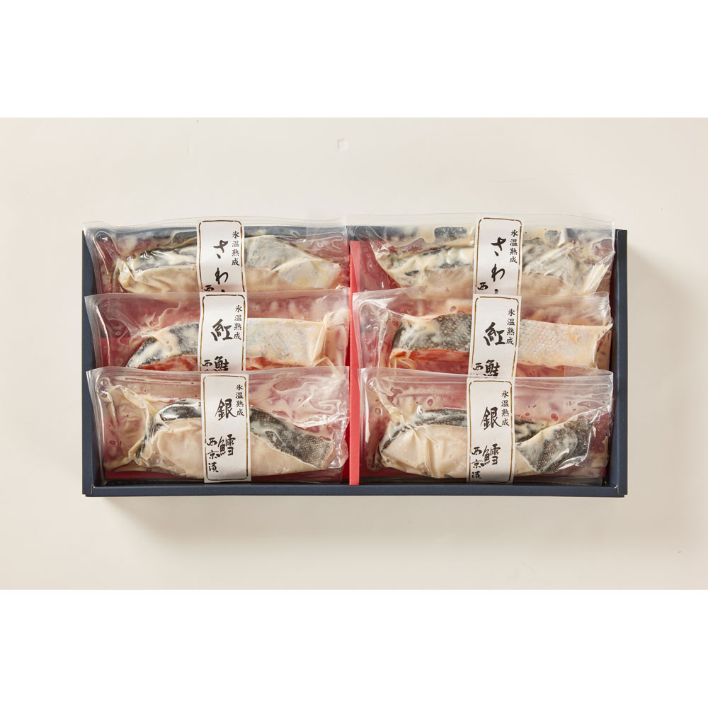 銀だら西京漬け70g×2、さわら西京漬け70g×2、紅鮭西京漬け70g×2