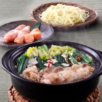 辛子明太子100g、もつ鍋あごだし醤油味1~2人前(もつ肉200g、スープ(濃縮タイプ)100g、ちゃんぽん麺150g、唐辛子、にんにく)