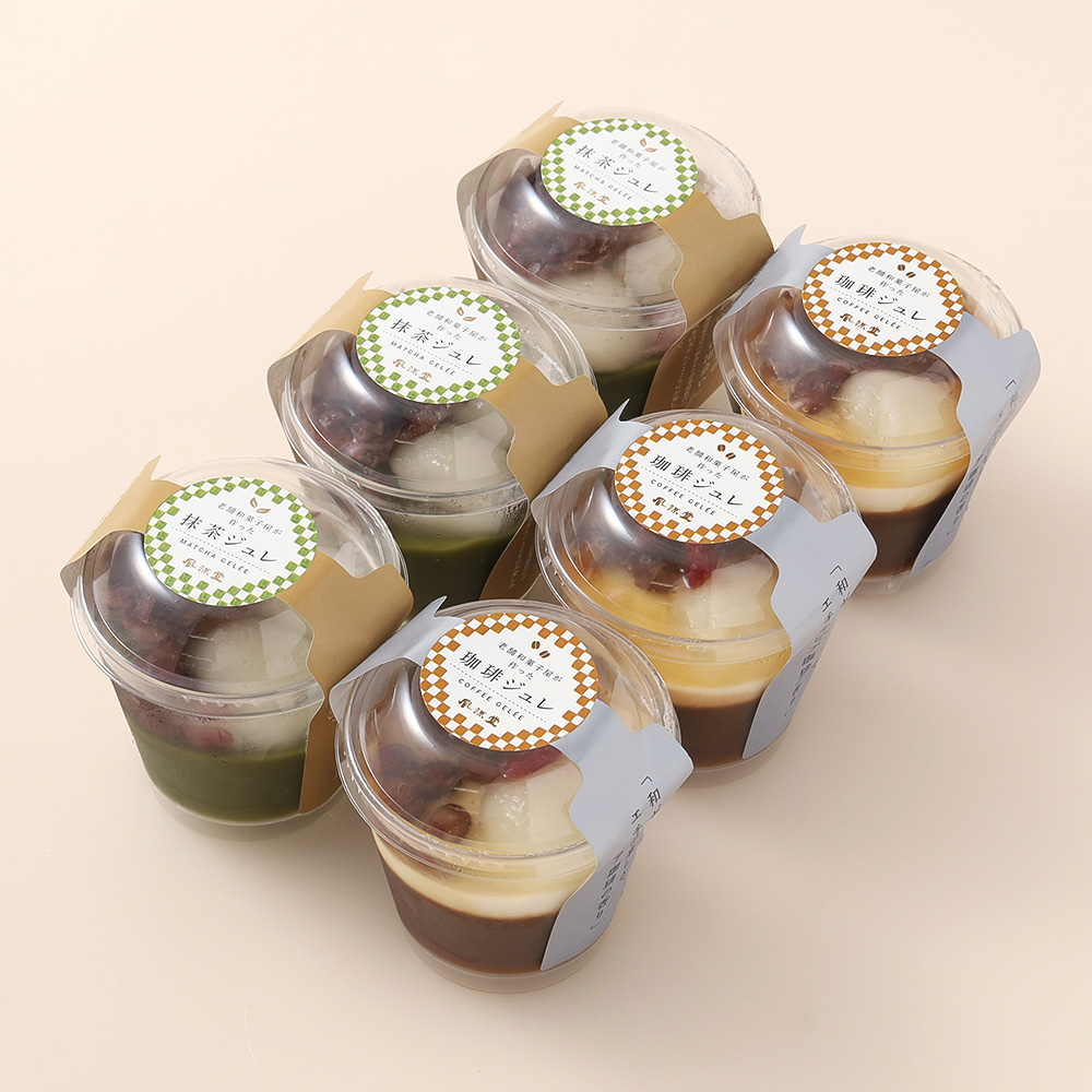 抹茶ジュレ3個、珈琲ジュレ3個