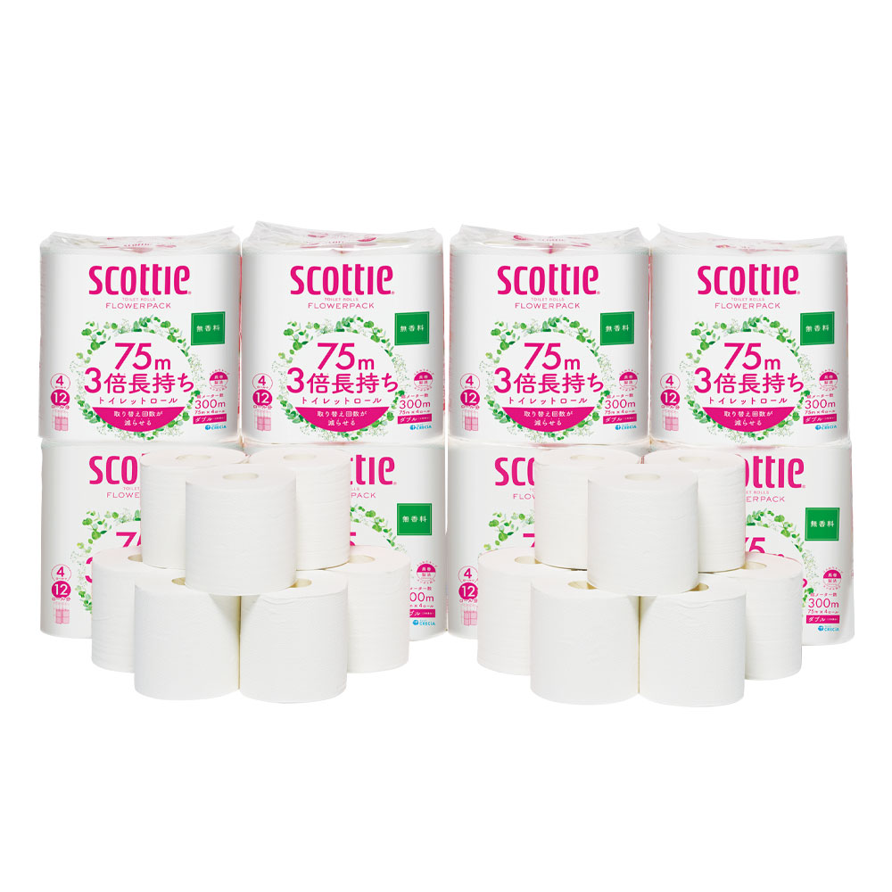 ※3倍長持ちはメーカー従来品スコッティ・フラワーパック12ロール(ダブル)との比較です。