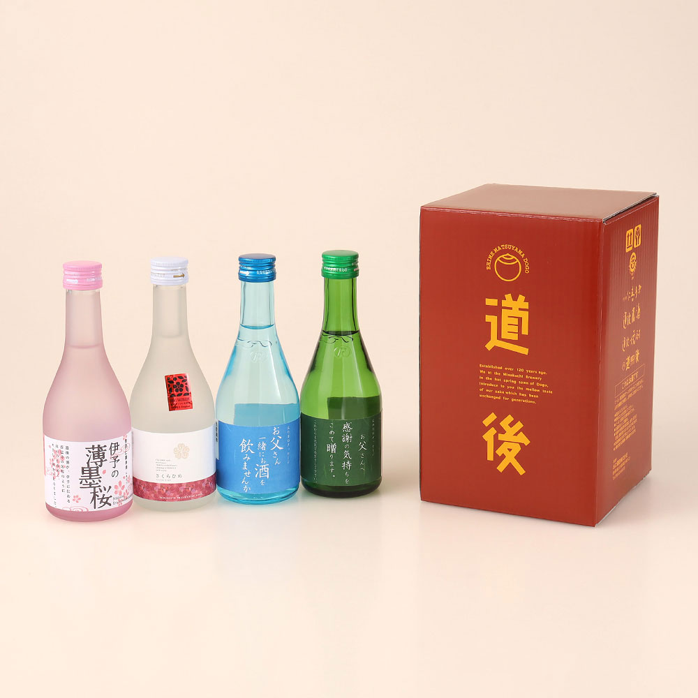 「父の日」の御祝いに。感謝の気持ちを込めたメッセージラベル。愛媛県 道後の酒蔵が醸した「道後の地酒」のオリジナルセットです。