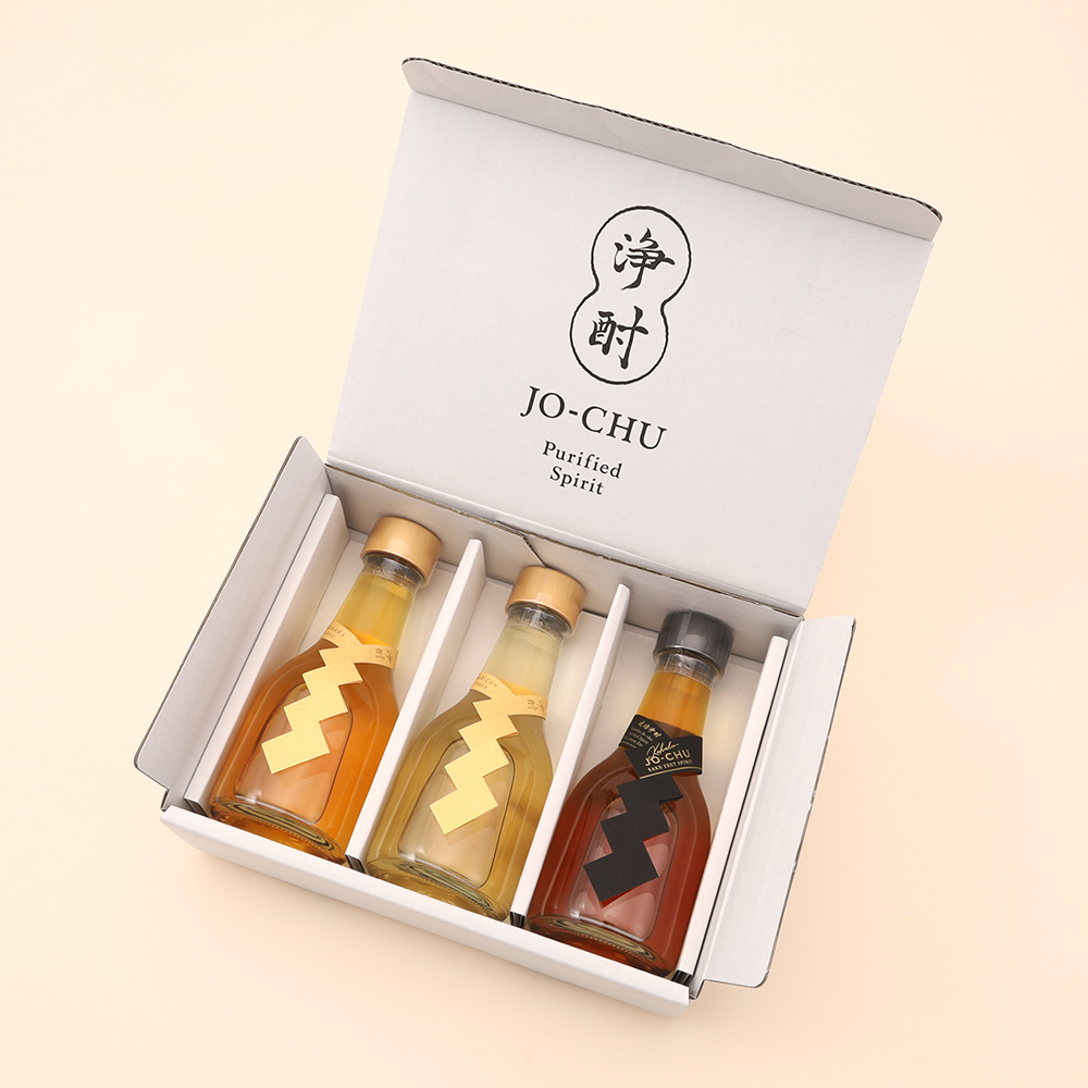 ミズナラ熟成「浄酎」、ホワイトオーク熟成「浄酎」、ミズナラ熟成「琥珀浄酎(レモンフレーバー)」 各180ml×各1本 ※アルコール分はいずれも41%
