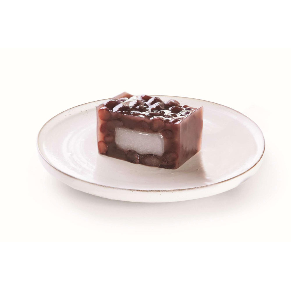<あも>叶匠壽庵の代表銘菓。味と香りがよく 、皮が薄くて口当たりのよい丹波大納言小豆。手間暇かけて手炊きした餡でやわらかな羽二重餅を包み込みました。<夏の玉露地>やわらかい餅羹の上に、白雪大納言と北海大納言の2種の小豆を透き通った錦玉でとどめています。水を打った露地を模した涼やかな景色をあらわしました。