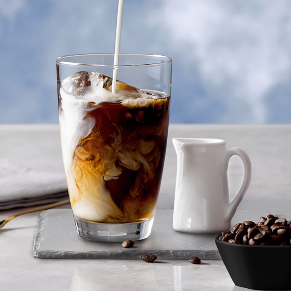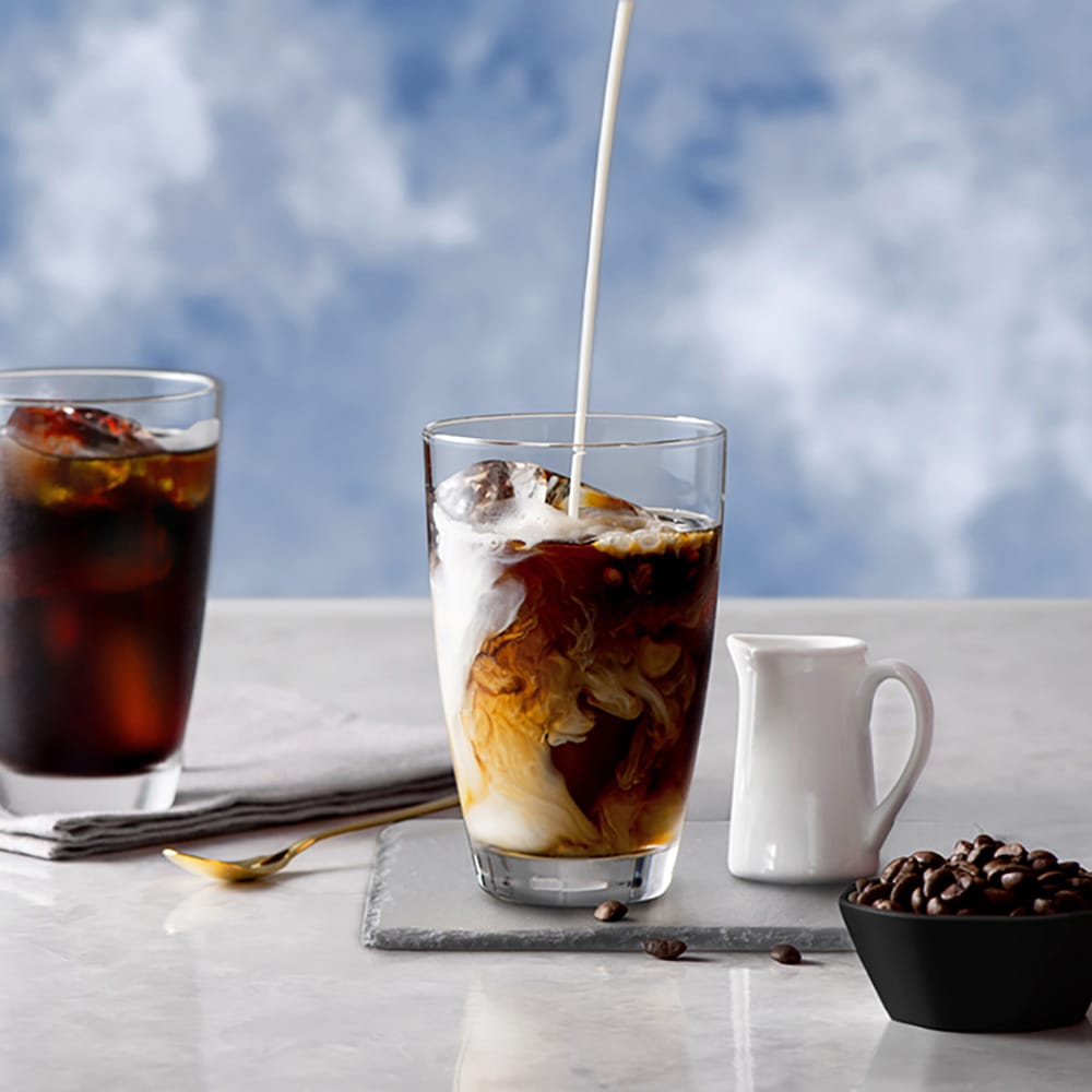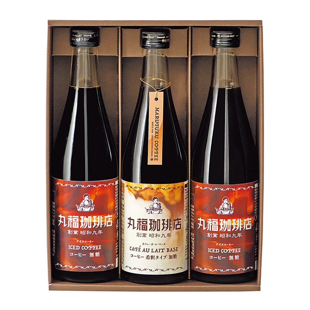 昭和9年創業の大阪「丸福珈琲店」のこだわりは、『濃厚でコク深い味わいだがあと味のすっきりとした珈琲』。まずはすっきりストレートで丸福珈琲店ならではの味わいを楽しんで、たまには牛乳をたっぷり入れて優しい甘みの濃厚なカフェオレを。こだわりを守り続ける丸福珈琲店がお届けする、オリジナルブレンドのアイスコーヒーと、牛乳で割って楽しむ甘みあるカフェオレベースのセットです。