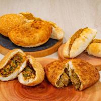 肉オニマシカレーパン:ゴロッと牛タン入り、ワインにもぴったりな贅沢な味わい。台湾カレーパン:ピリ辛ミンチと香味が際立ち、クセになる辛さ。バターチキンカレードッグ:まろやかでコクのある、女性にも人気の濃厚カレー。全て自家製カレーを使用し、こだわりの具材とカレールーが絶妙に絡みます。3種を一度に楽しめる食べ比べセットで、それぞれの味を堪能できます。