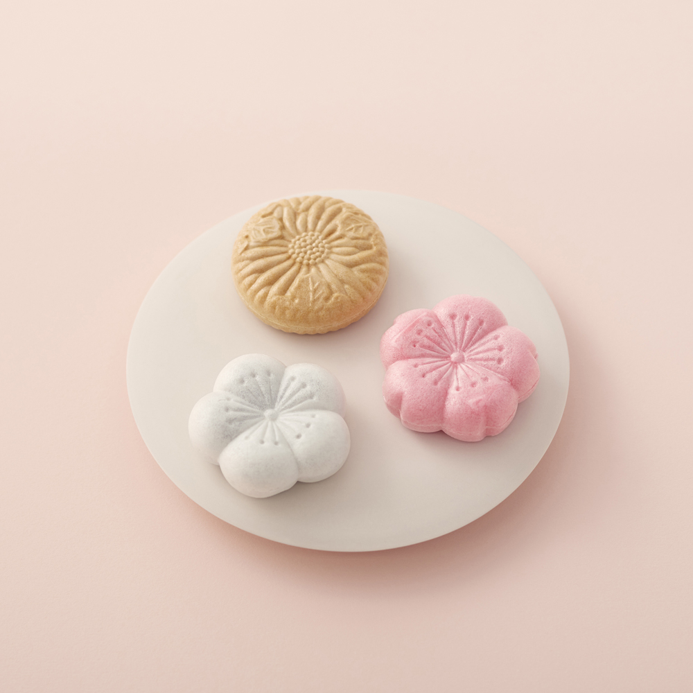 最中『弥栄』『御代の春 紅』『御代の春 白』各4点と、生姜入焼菓子『残月』6点を詰め合わせました。