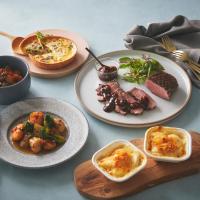 香ばしくローストした合鴨を主役に、前菜にぴったりのキッシュをはじめ、魚介や野菜を使った料理、濃厚なチーズとじゃがいもが絶妙なドフィノワなど、華やかな食卓を演出する5品をセレクトしました。冷凍庫にストックしておけば、少しずつ楽しめる、日々のちょっとしたご褒美にも最適です。