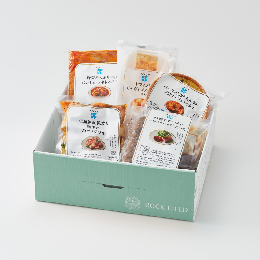 【RFFF(ルフフフ)】の名前は、Rock Field Frozen Foods の頭文字から。 RF1で馴染み深いロック・フィールドの美味しさを、冷凍食品でもお楽しみいただけますように、と。「るふふふ」と笑みのこぼれるような音で、ご褒美時間の喜びを表現しました。
