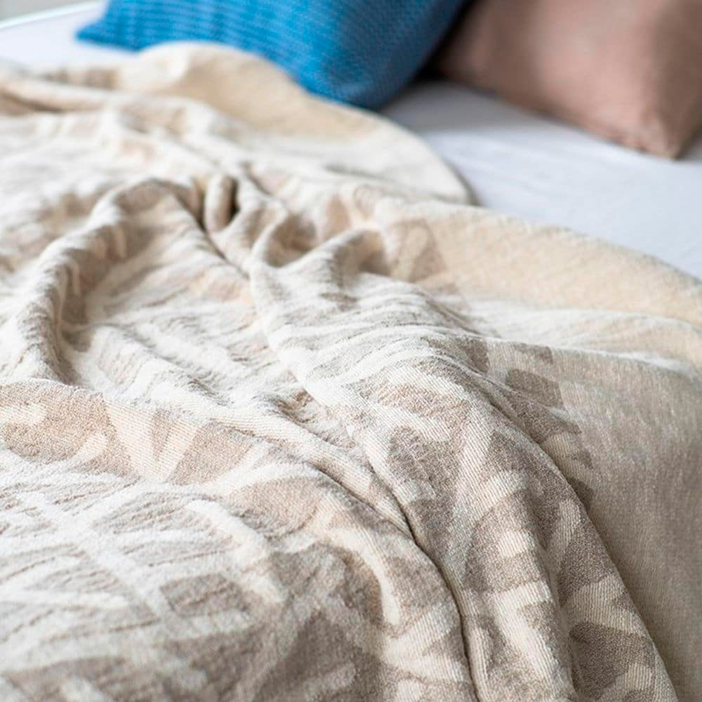 シャリっとリネン、ふわっとシュニール いいとこどりのブランケット