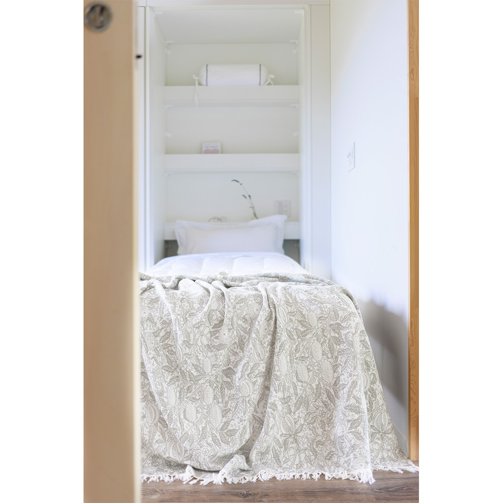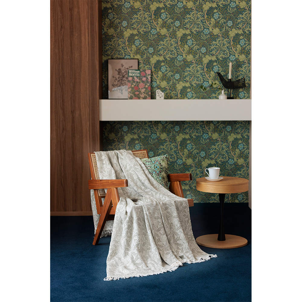 軽さ、肌触り、優しいデザインが魅力のウィリアム・モリスデザインのガーゼコットンスロー。