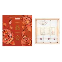 一つの木箱の中にカタログギフトと今治タオルが一緒にセットされた格調高いギフト