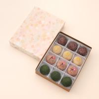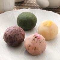都城産の餅米を使用し、色彩豊かな国産素材を小山田特製の餡に練り込んだ4種類のおはぎセットです。粒餡:北海道産の小豆を使用した自家製粒餡で包んでいます。桜:自家製白餡に桜葉を練り込み桜風味を出しています。よもぎ:自家製白あんによもぎを練り込んだおはぎです。日向夏:手をかけて蜜漬けした日向夏の皮を自家製白あんに練り込んだおはぎです。