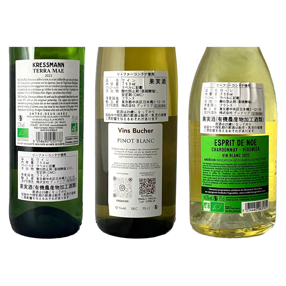 品種:ボルドー:ソーヴィニヨンブラン、アルザス:ピノブラン ローヌ:シャルドネ&ヴィオニエ