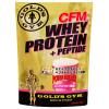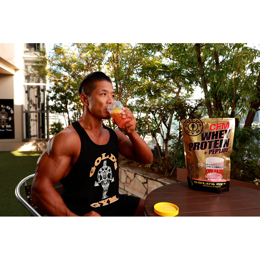 品質へのこだわりCFMホエイは、原料の選定、乳糖・脂肪の除去、1種類のチーズ製造からの一貫管理など、たんぱく質の品質を追求。ホエイのためのホエイ造りにこだわっています。純度へのこだわり乳糖、脂肪、そして変形たんぱく質までも取り除くことにより、高純度のたんぱく質を実現しました。栄養価へのこだわりCFMホエイは、身体づくり※に有用なアミノ酸、BCAA値が高いGMPなど、乳由来の栄養成分を豊富に含んでいます。ミックスベリー風味:甘酸っぱいストロベリーフレーバーをベースに、さわやかな酸味のブルーベリーフレーバーをミックスし、香り豊かに仕上げました。牛乳でも水でも美味しくお召し上がりいただけます。CFMホエイペプチド配合ホエイプロテインを分解し消化吸収までのスピードを高めたホエイペプチドを配合することで、 トレーニング後など身体がもっとも栄養素を必要とする時に素早くたんぱく質補給ができます。ビタミンB群を配合たんぱく質や炭水化物の代謝の利用に必要なビタミンB群を配合。ビタミンB群は体内にストックすることができない水溶性のビタミンなので、こまめに補給する必要があります。大さじ山盛り1杯で約10~15g 運動量や目的に合わせ、1回20~30gを目安にコップ1杯(約200cc)の牛乳やジュース、 水などに溶かしてすみやかにお飲みください。※健康的な身体の維持のこと
