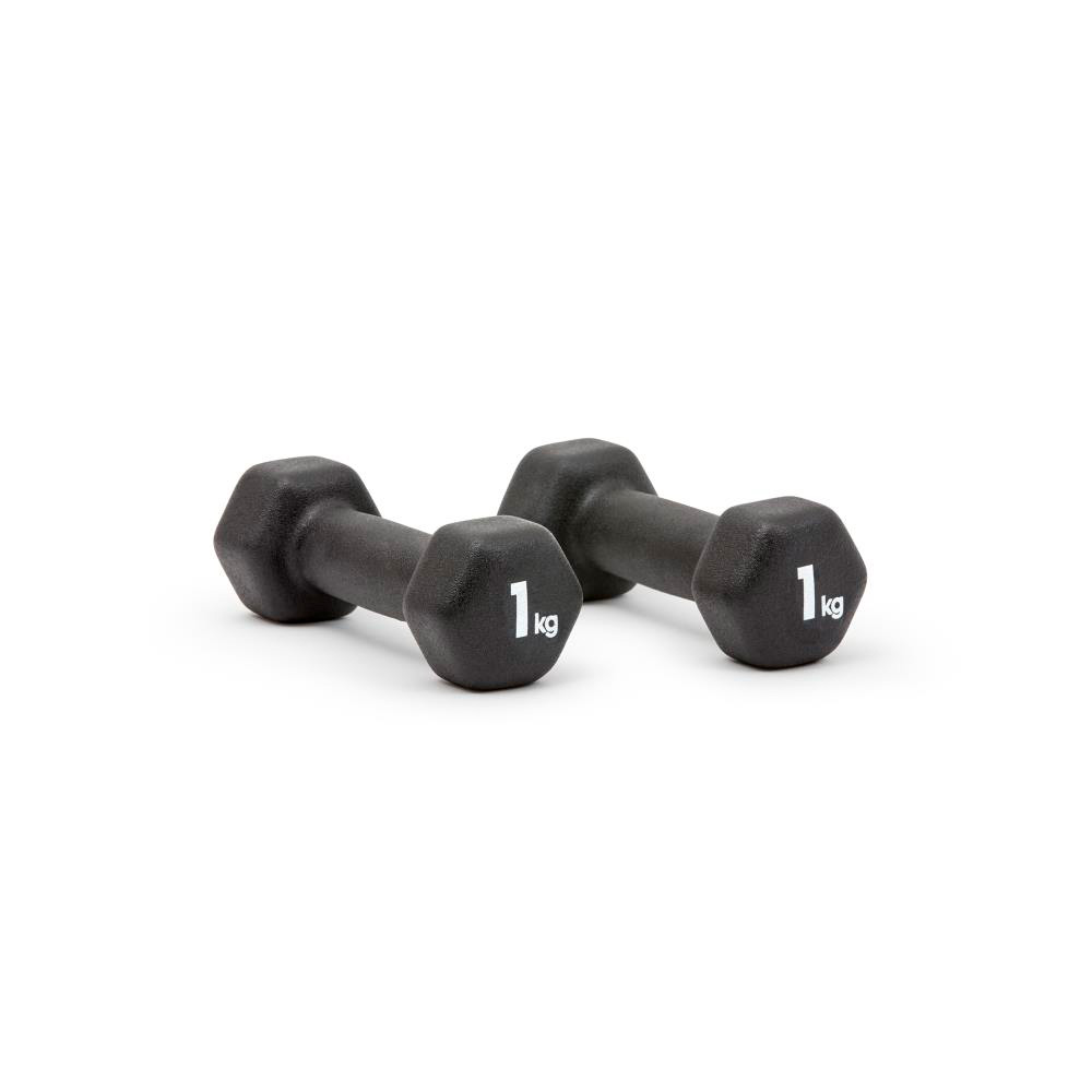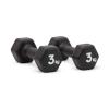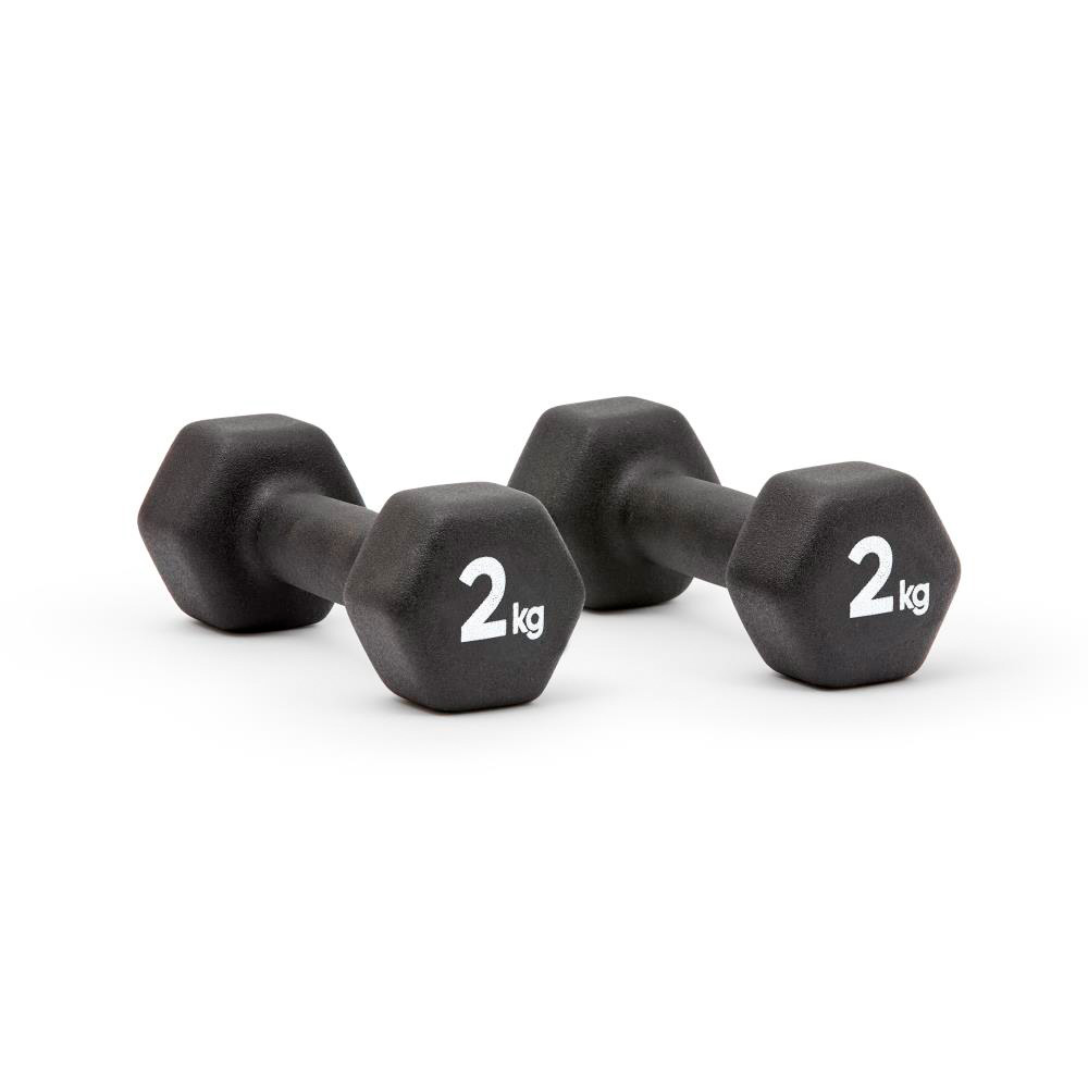 ネオプレン加工により滑りにくく、かつ転がりにくい六角形デザインが特長のトレーニングダンベル