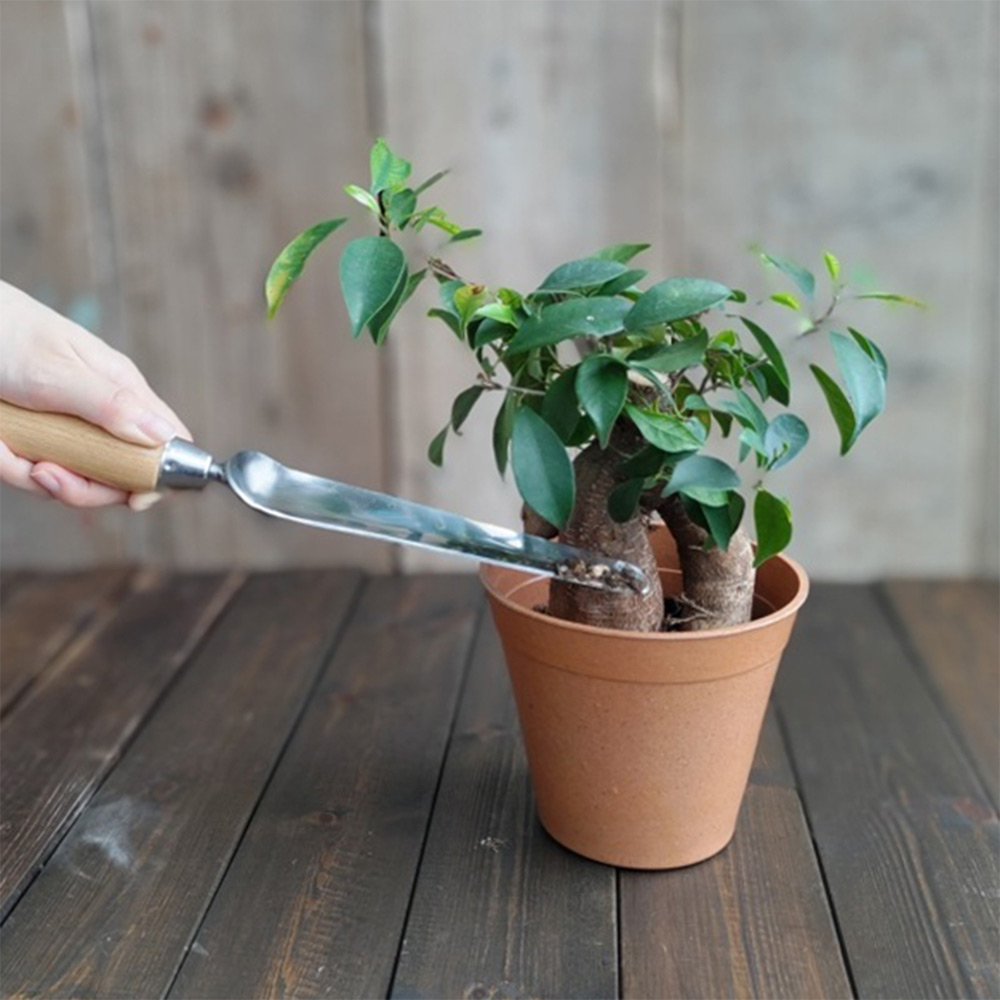 小さな球根や根付きの挿し木、寄せ植えなど細かい作業に適した細長いユニークなデザイン。土の付着もしにくく効率的な植栽が可能です。ステンレススチールのヘッドを採用。伝統的で美しい輪郭のハンドルは握りやすく、作業しやすいところもポイント。