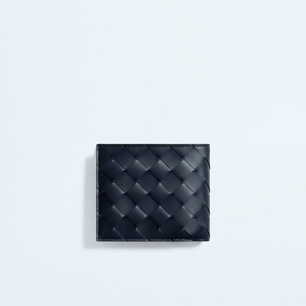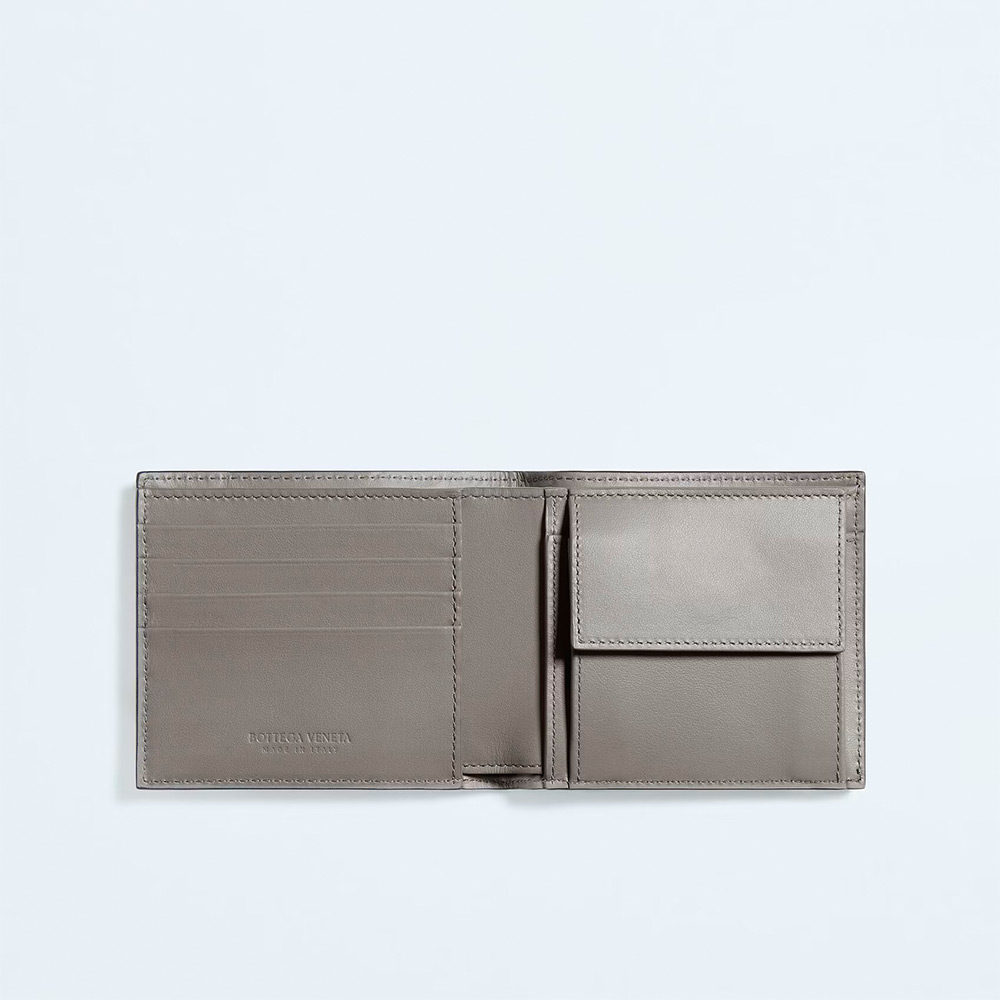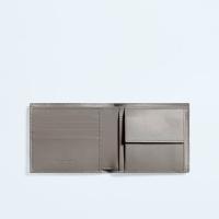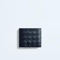 内側にコントラストカラーを配した、イントレチャートカーフレザーの二つ折りウォレットです。コインパースが付いています。