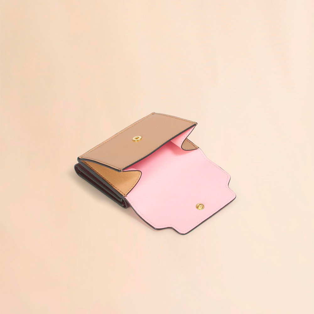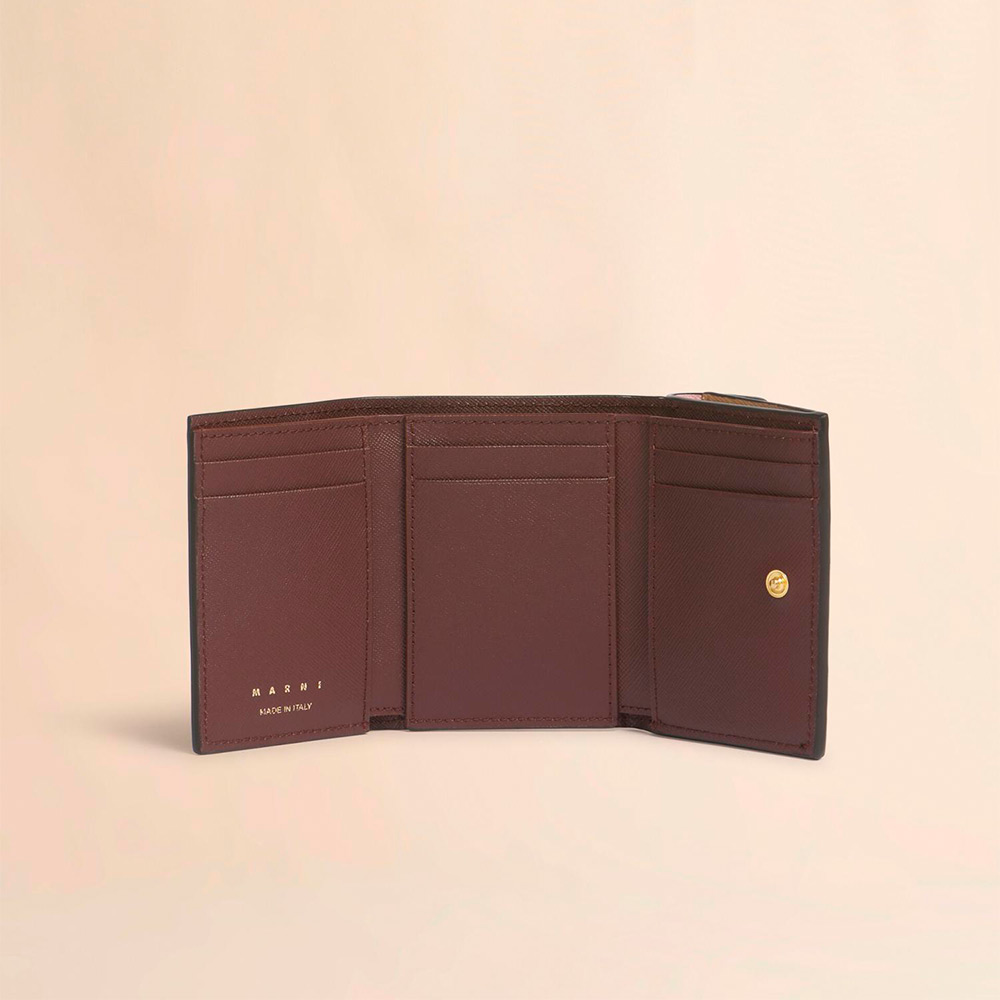 サフィアーノレザー製の「TRUNK」3つ折りウォレット。紙幣入れ1つ、カードスロット6つ、スロットポケット3つ、コインポケット1つ。フロントにロゴ入り。