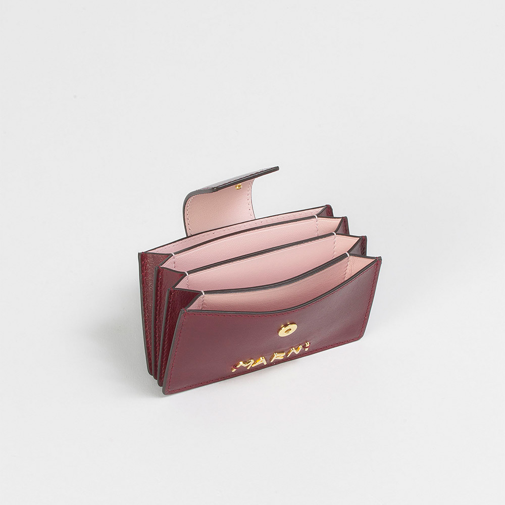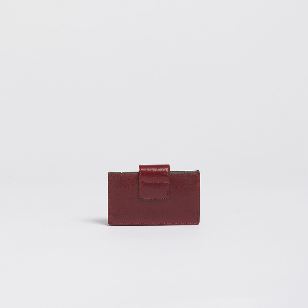 ナチュラルタンニングレザー製の「METAL MENDING」カードホルダー。スロットポケット4つ。スナップボタン開閉式。フロントのメタルメンディングロゴがアクセントに。