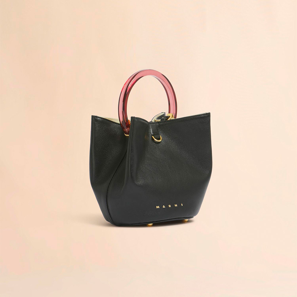 アーカイブコレクションより着想を得た「PANNIER」バッグ。アイコニック的な形状は維持しつつ、現代的なシルエットへアップデート。レジン素材のトップハンドル。フロントにあるDリングにチャームなど取り付けが可能。