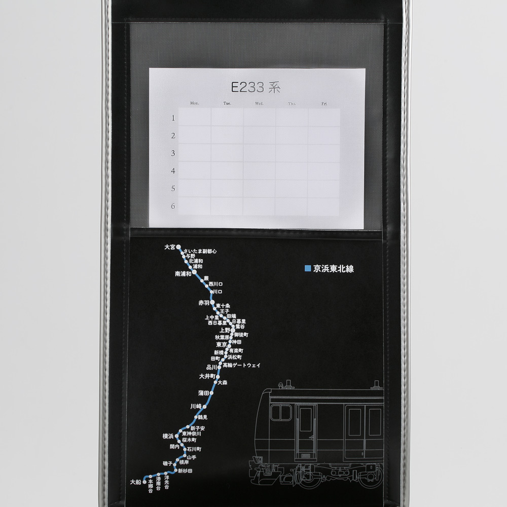 スカイブルーの帯をまとったE233系。神奈川県と埼玉県を繋ぐ、横浜になじみ深い電車の京浜東北線E233系車両のデザインをランドセルに。かぶせは車両前面を、大マチ横面は車両の側面をイメージしたカラーリングとなっています。かぶせ裏には路線図の画像がプリントされています。指1本でくるっと開き、近づけるだけでピタっと閉じる錠前「くるピタ(R)」を採用。お届けは2027年1月中旬以降となります。JR東日本商品化許諾済