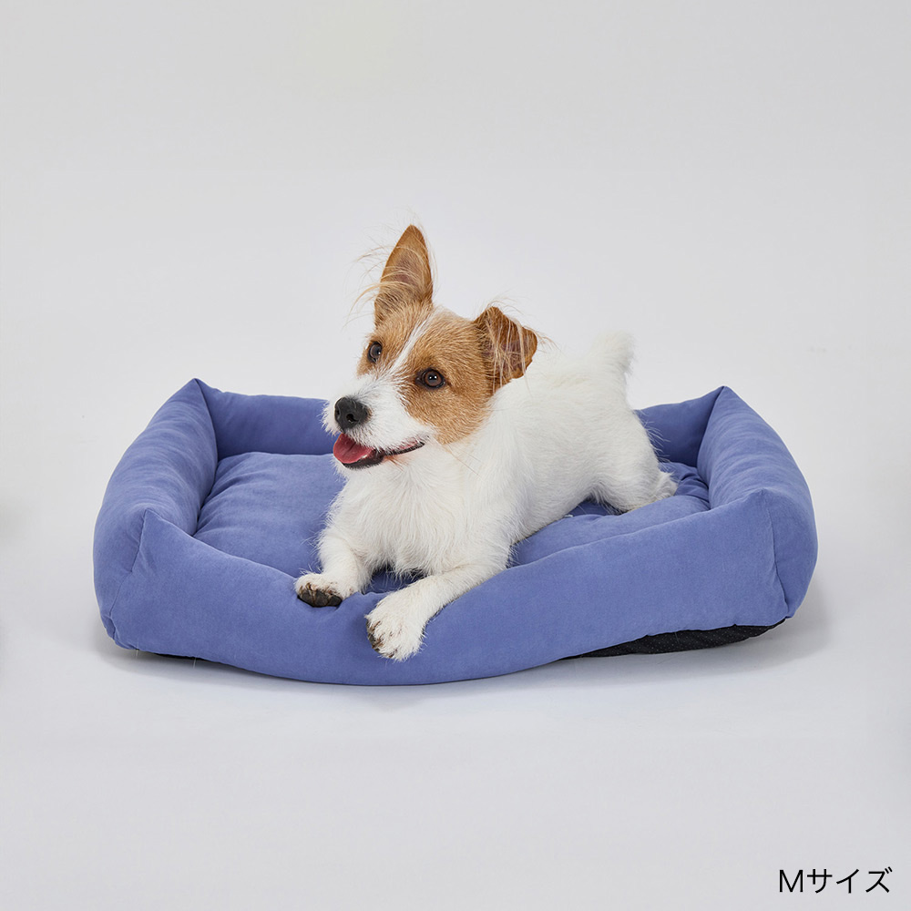 お部屋でのゴロゴロタイムや、ケージ内での使用にぴったりなフラットベッド。程よい高さで使いやすく、愛犬がどこでも安心してリラックスできるように考えた設計。毎日のくつろぎ時間をもっと快適に。中央にはふっくら中わた入り。ペットには優しい低めの囲い、裏面には滑り止め付き。※洗濯は手洗いを推奨しております。