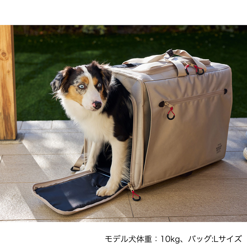 胴長のワンちゃんにも適しています。愛犬のサイズに合わせて選べる2サイズ展開で、小型犬の多頭飼いにもおすすめ。顔も見えて通気性を考えたダブルメッシュ構造。自立するしっかり設計で、簡易ハウスとしても活用できます。
