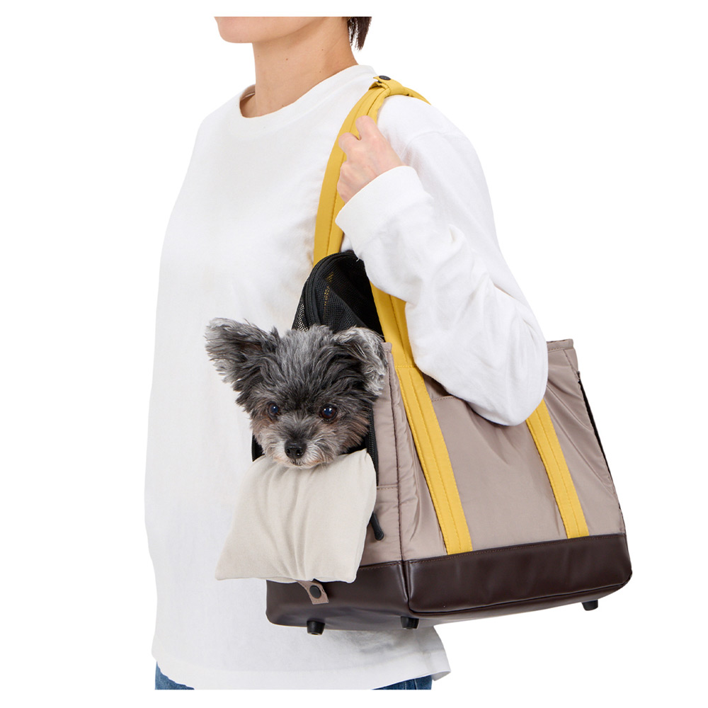 小型犬やパピー用として絶妙なサイズ感のトート型ミニキャリー。