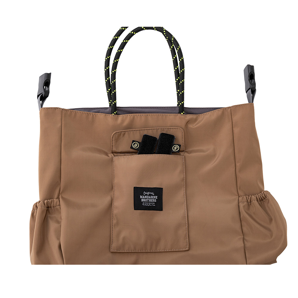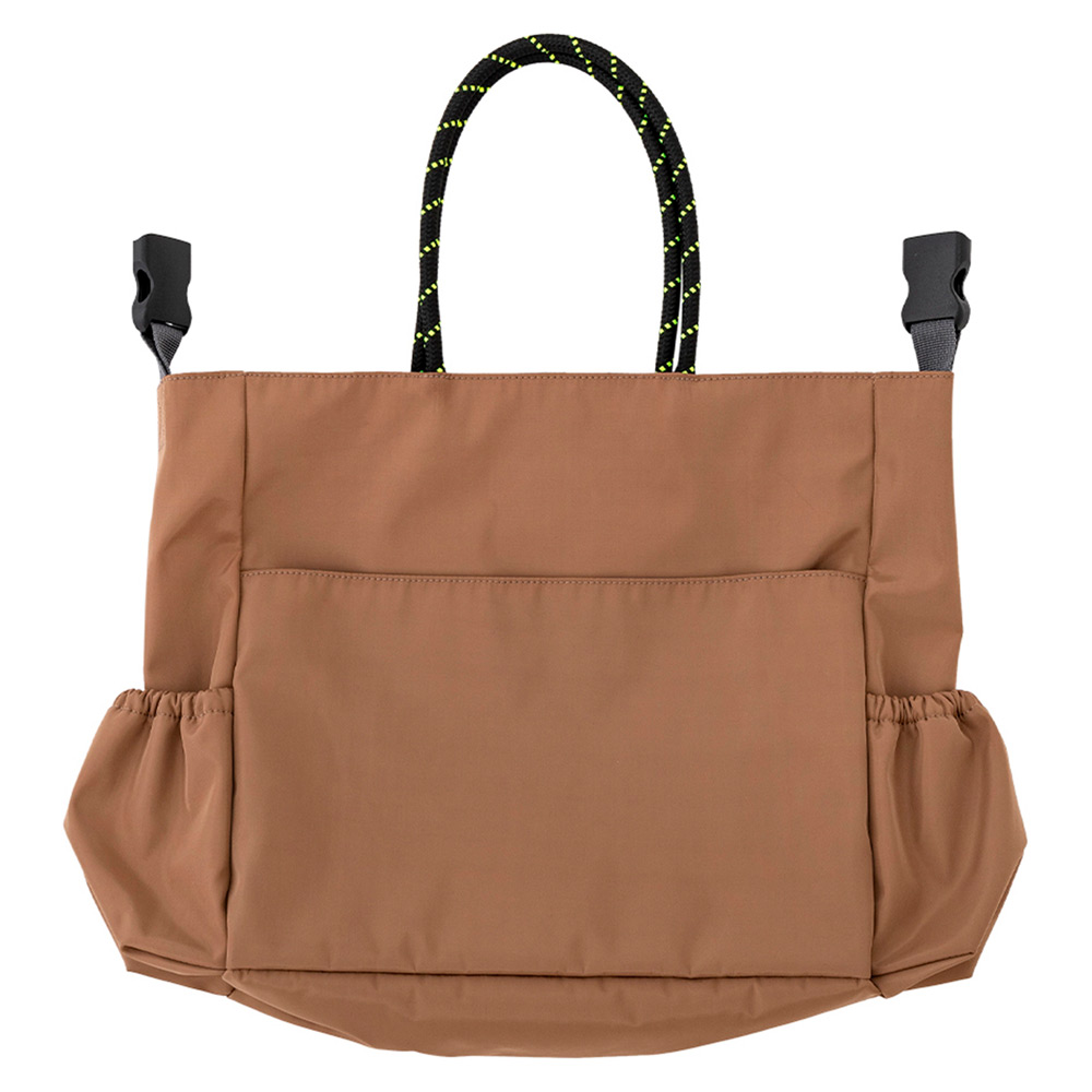 大きいサイズでたっぷりの収納力。ペットカートに取り付け可能なバッグが登場。リバーシブル仕様でシンプルタイプとスポーティータイプ両方で使用可能。肩あて付きショルダーストラップが付属。斜めがけのバッグとして持ちやすいロープハンドル。両サイドにボトルポケットが2つ。ペットカートに取り付け可能なアタッチメントが2本付属。リバーシブルのどちらでもペットカートに取付け可能。