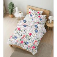 水彩画のソフトなタッチとサテン生地の滑らかさが、ベッドルームを華やかに彩ります。