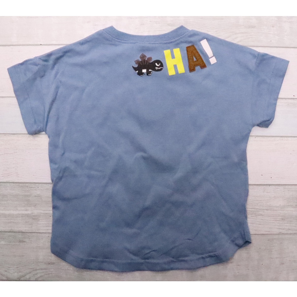 【Tシャツ:ブルー(ダイナソー)】本体:ポリエステル65%・綿35%、リブ部分:ポリエステル62%・綿33%・ポリウレタン5%