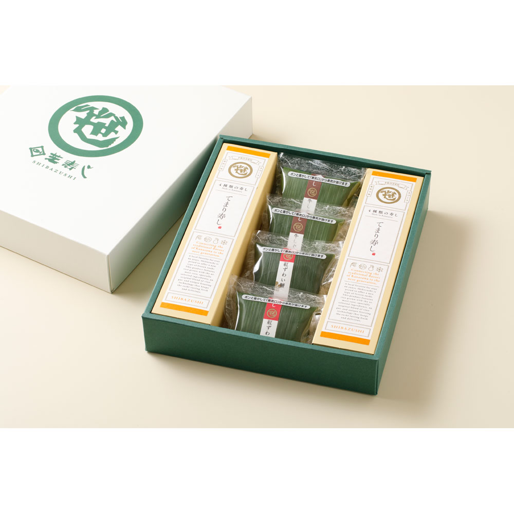 一口サイズの手まり寿しと、温めて美味しい笹蒸寿しのセットを、金沢の名店「芝寿し」から。