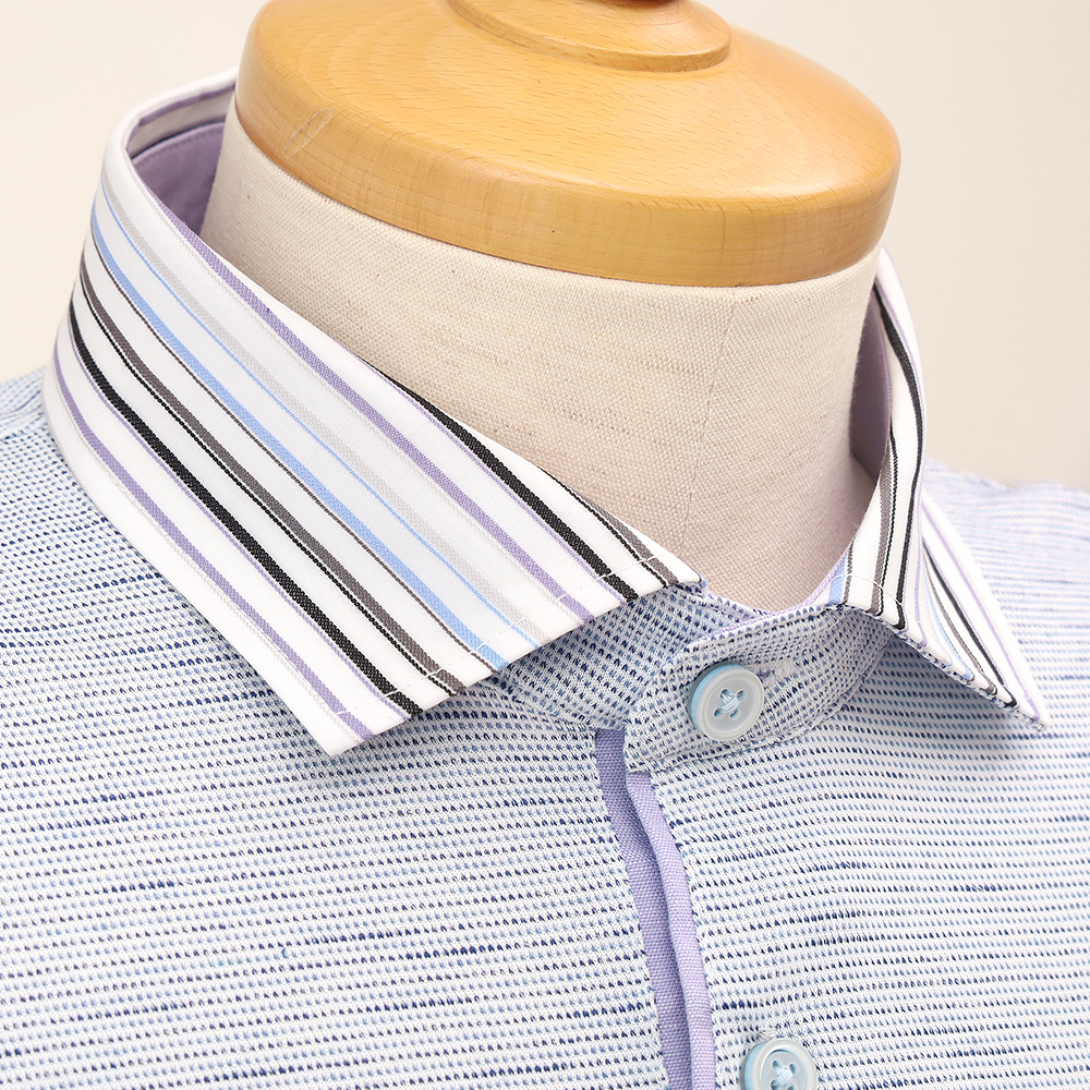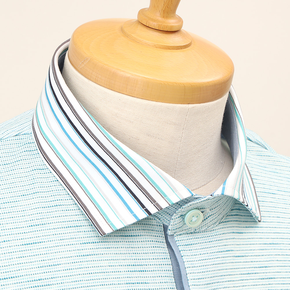 7. 【父の日】ピンドットボーダー 衿布帛ポロシャツ S→2L
